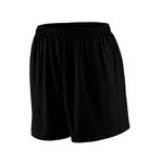 92% polyester/8% spandex pinhole mesh * Wicks moisture away from the body * Ladies fit * Tag-free label * Covered elastic waistband with inside drawcord * 5-inch inseam